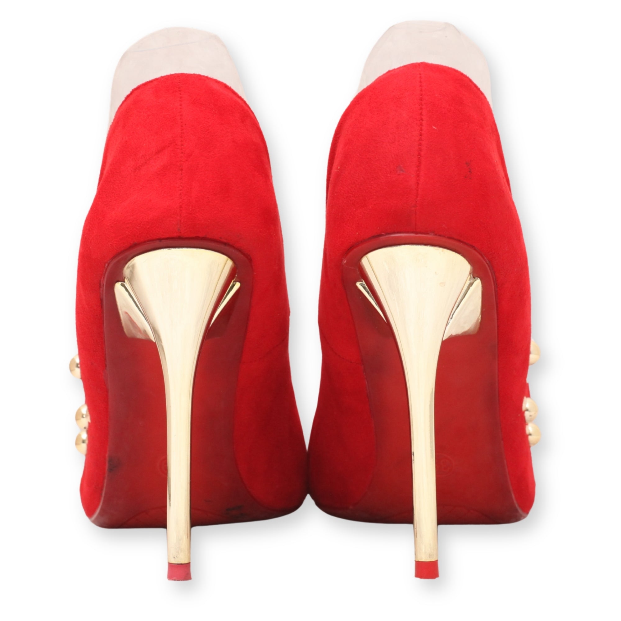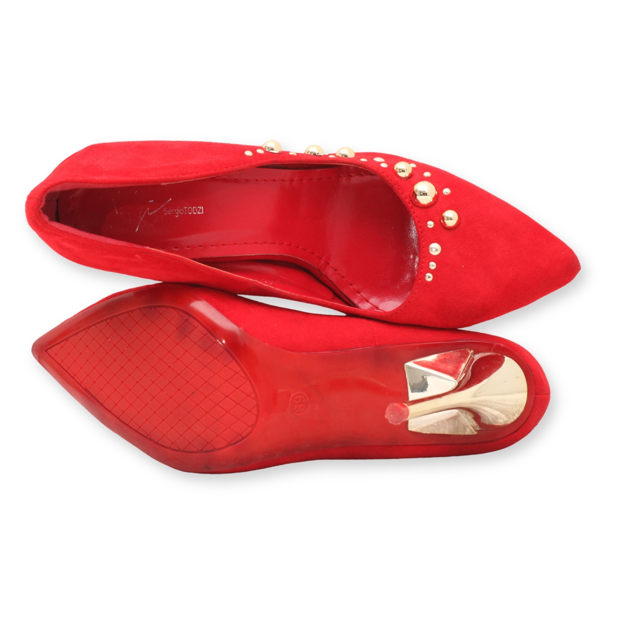 red studded pointed toe high heels