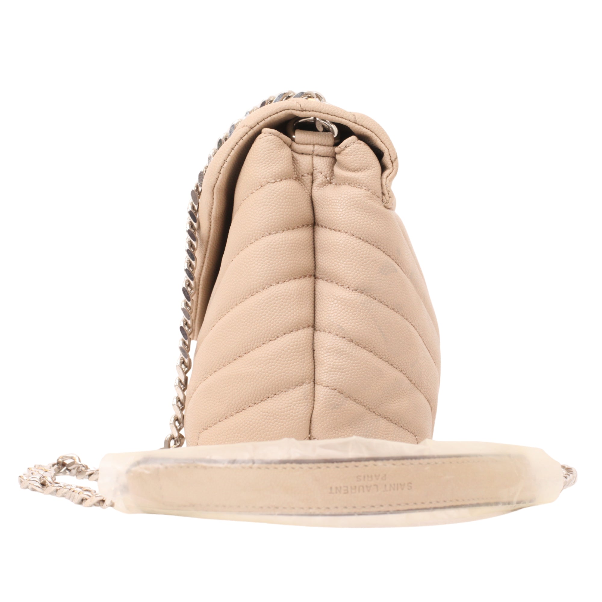 with a sliding chain strap, the bag may be worn on the shoulder or