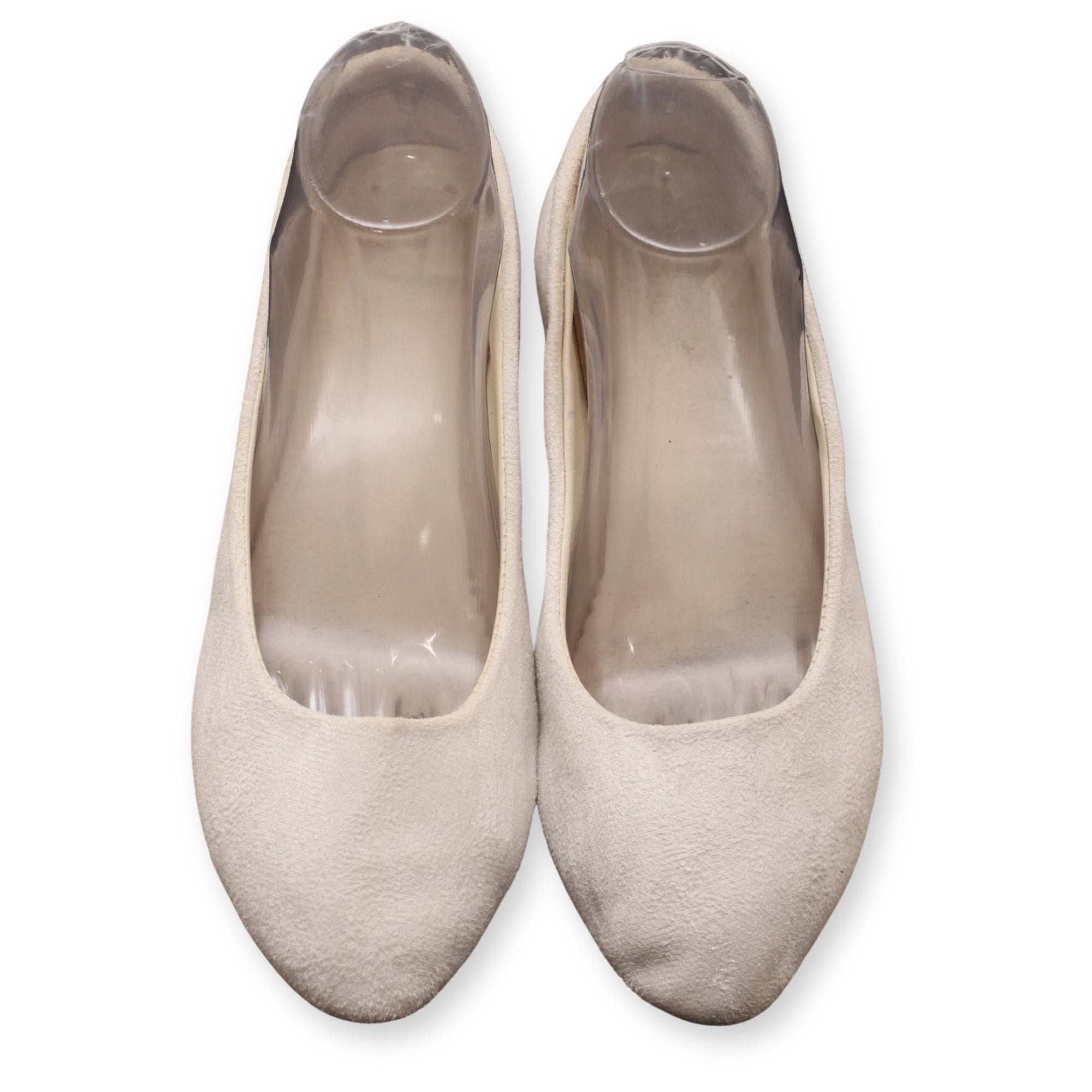 Suede-textured pointed-toe ballet flats
